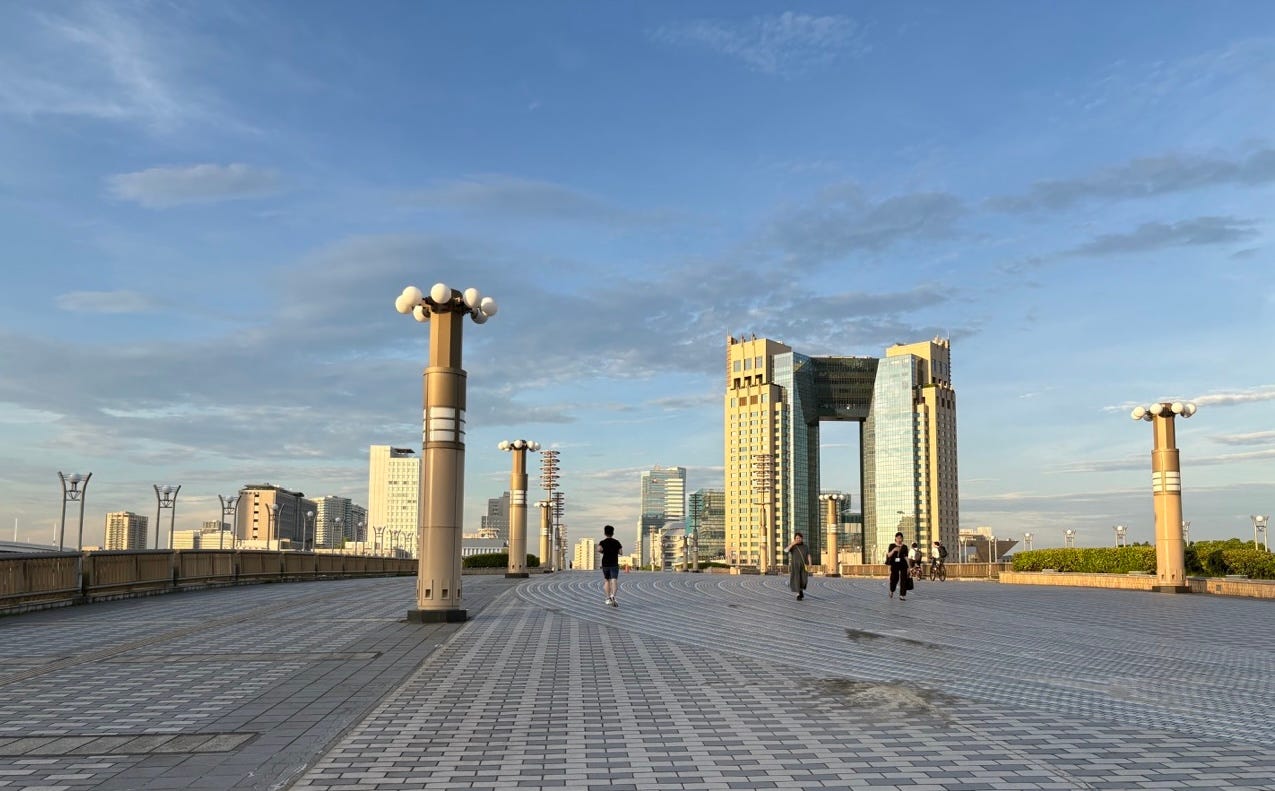 後來發現,原來台場也很適合慢跑!趁著第一天議程結束,和同事相約換好裝備跑一圈,傍晚時分,學生們三三兩兩從校園走出來,往車站的方向走去,風景很青春。
